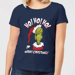 Dr. Seuss The Grinch Ho Ho Ho Women’s Christmas T-Shirt – Navy