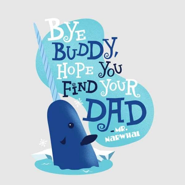 Buddy’s quest to find his dad – and get him scratched off the naughty list – means he has to say goodbye to a few people… but they wish him well, as this awesome print shows!