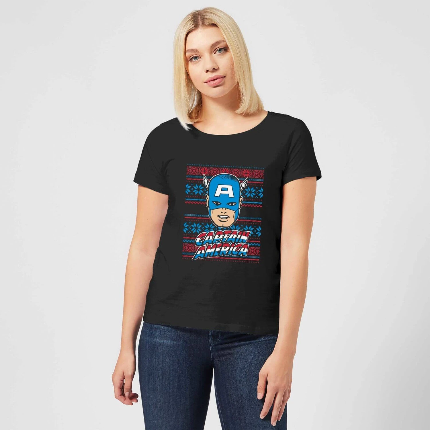Marvel Captain America Face Women’s Christmas T-Shirt – Black