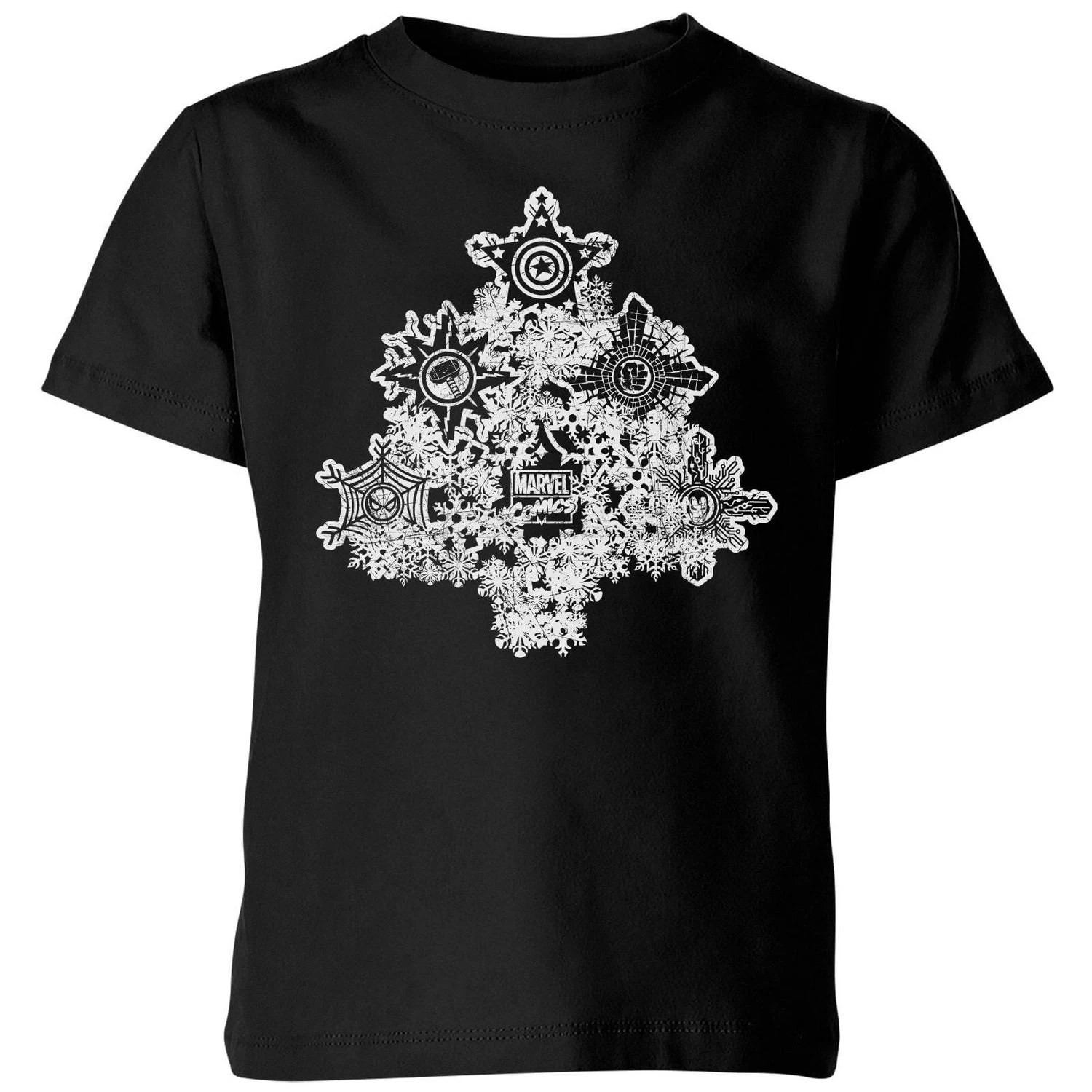 Marvel Shields Snowflakes Kids’ Christmas T-Shirt – Black