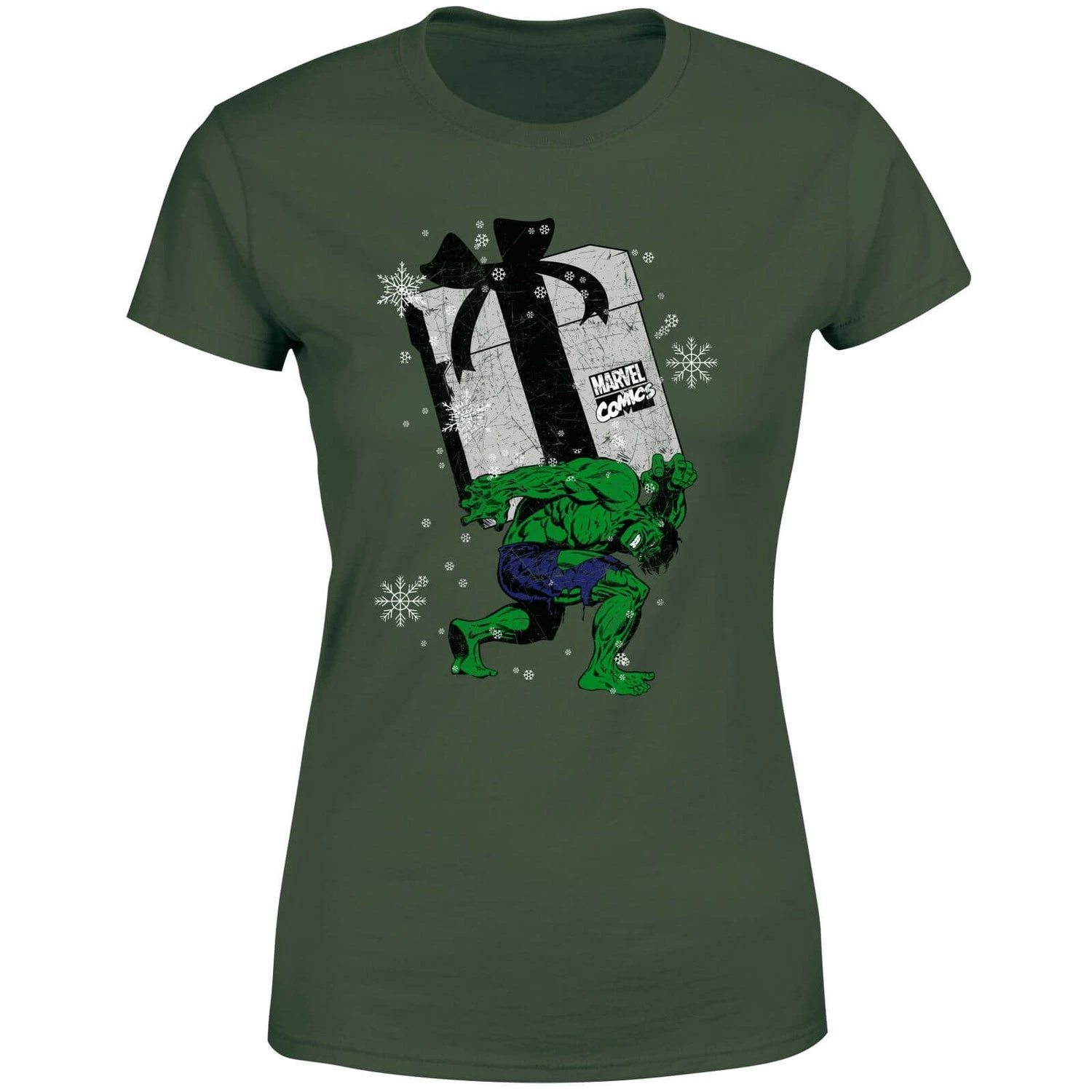 Marvel The Incredible Hulk Christmas Present Women’s Christmas T-Shirt – Forest Green