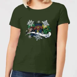 Marvel Thor Iron Man Hulk Snowflake Women’s Christmas T-Shirt – Forest Green