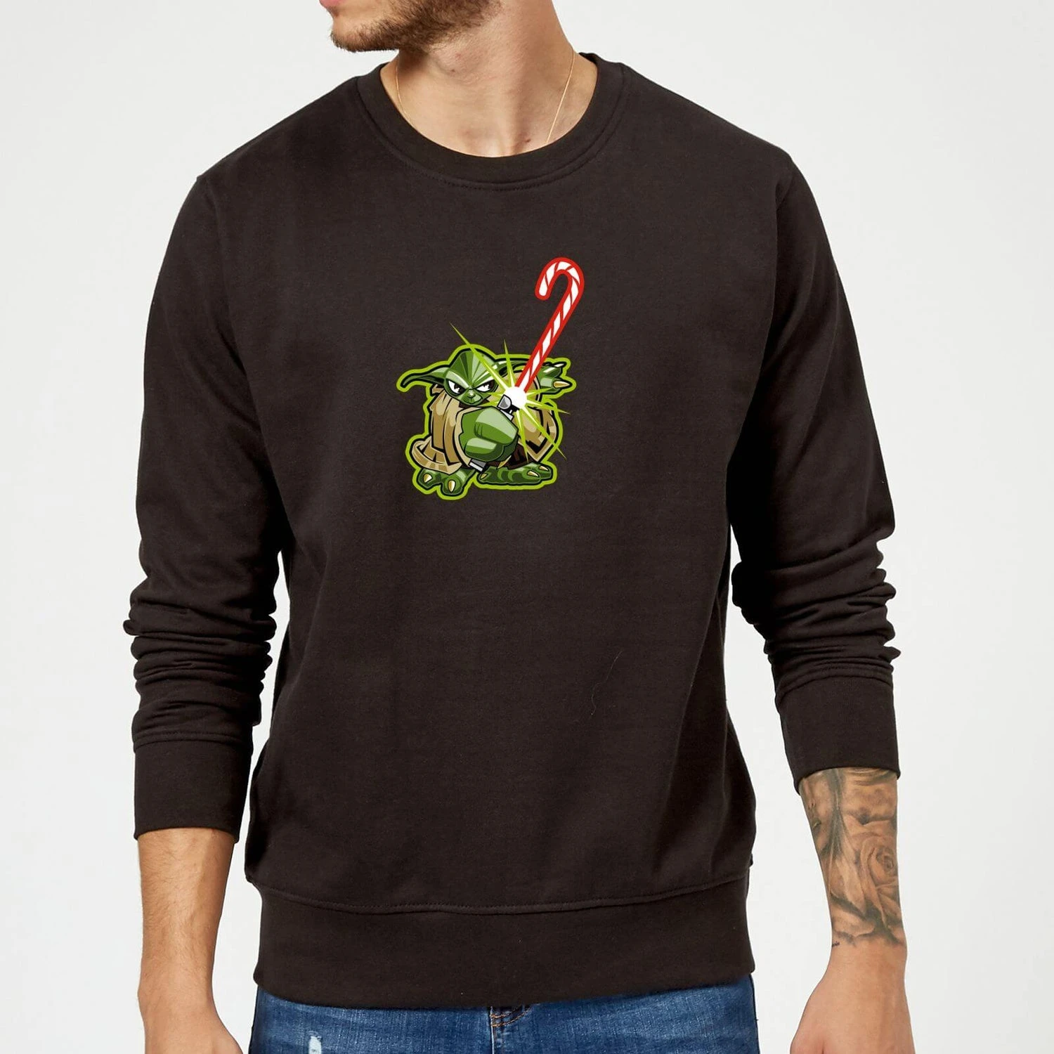Our fantastic Star Wars Candy Cane Yoda Black Christmas Sweatshirt, which is purchasable only by site patrons, is a stylish product.