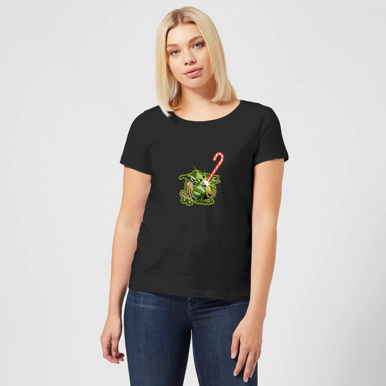 The Star Wars Candy Cane Yoda Women’s Christmas T-Shirt, a must-have addition to any wardrobe, is exclusive to our site.