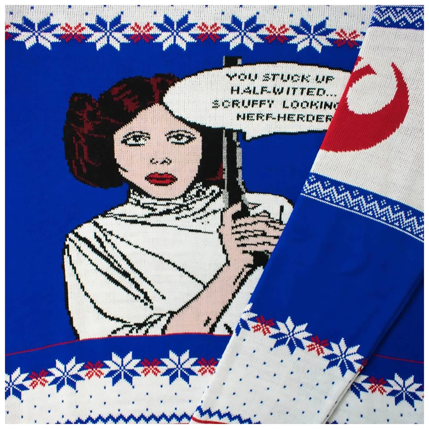 You’d be nerf-herder not to get your hands on our one-of-a-kind official Princess Leia festive jumper to help you through the winter months ahead. Keep ultra warm with the help of Princess Leia’s fiery words and impressive abilities wearing our fun-looking comic book style nordic knit wardrobe essential. Perfect as a gift for yourself or a loved one!