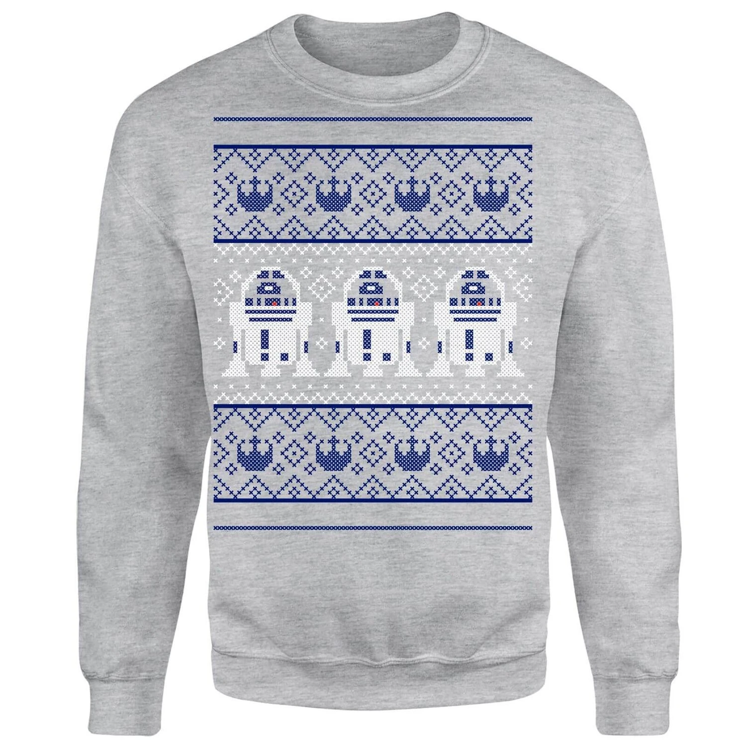 Our inspired Star Wars R2D2 Christmas Knit Grey Christmas Sweatshirt, a site exclusive, is a smart addition to any wardrobe.