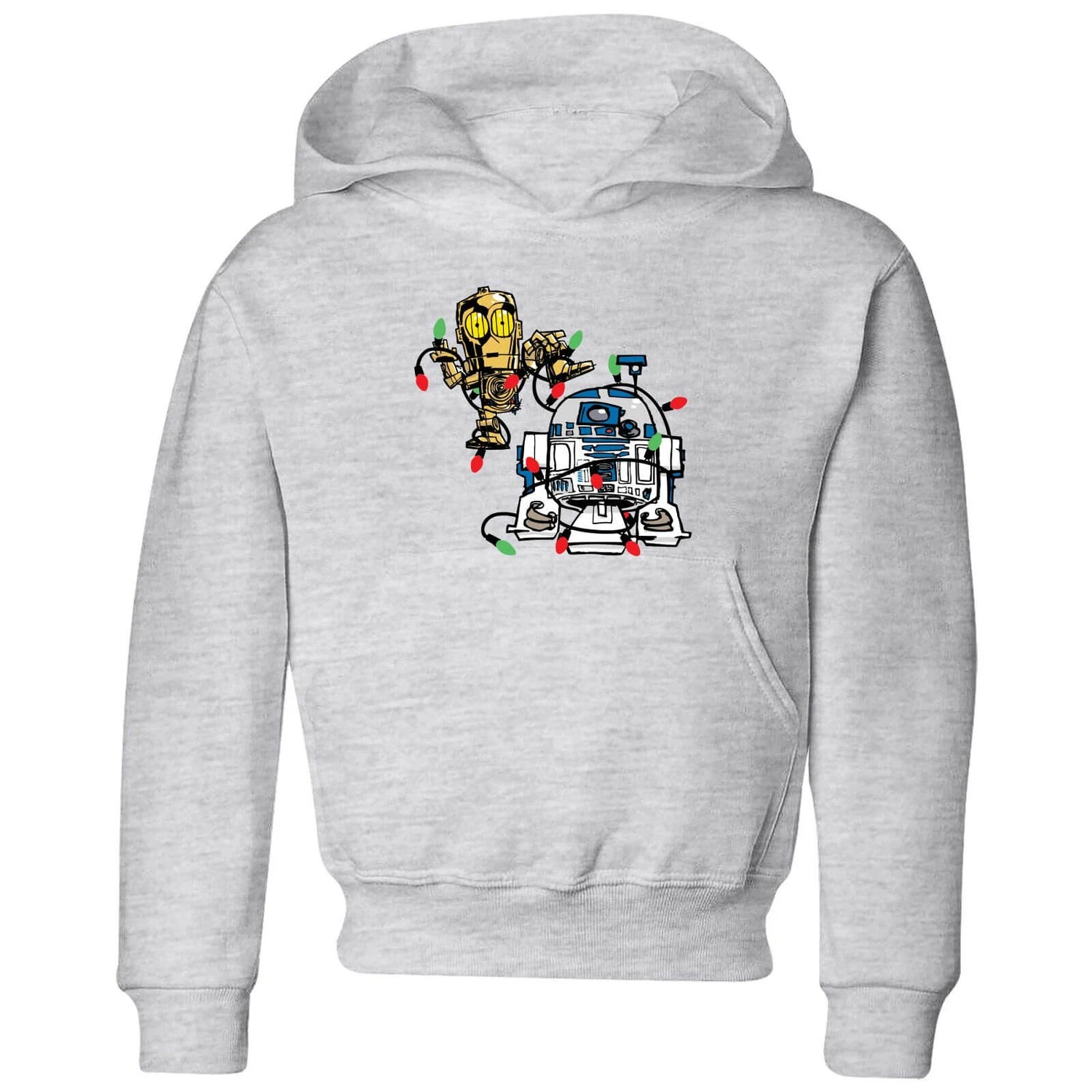 Star Wars Tangled Fairy Lights Droids Kids’ Christmas Hoodie – Grey